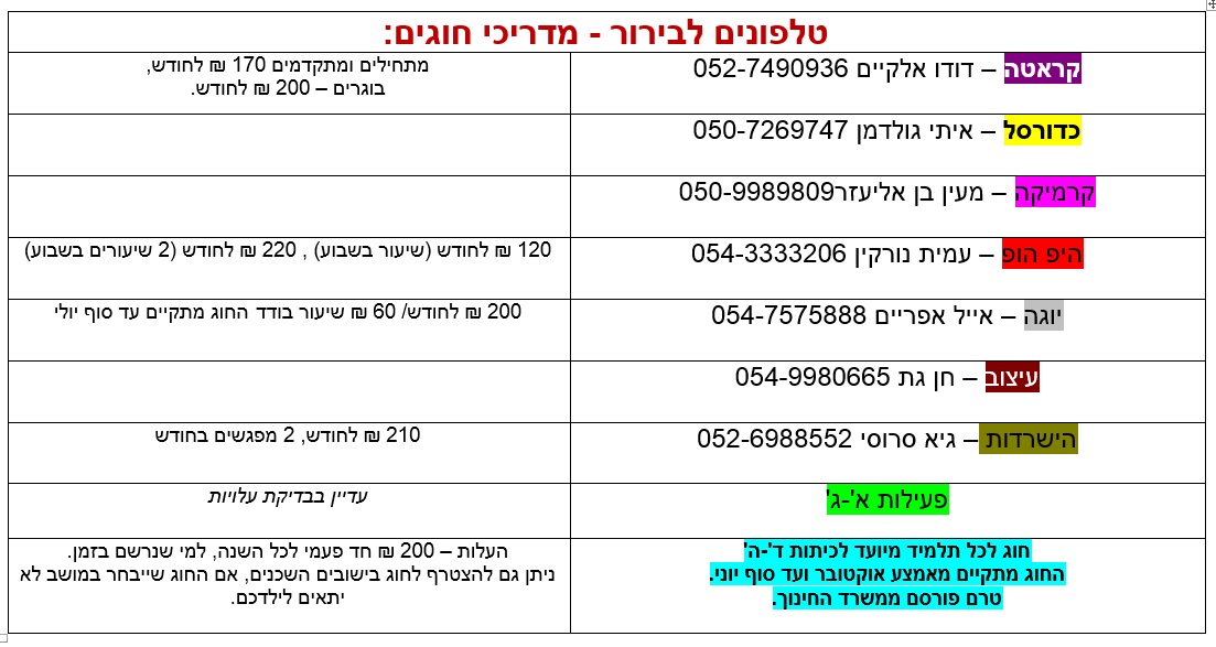 שימו לב לחוגים חדשים שרוצים לפתוח ביישוב- עיצוב, הישרדות והיפהופ.