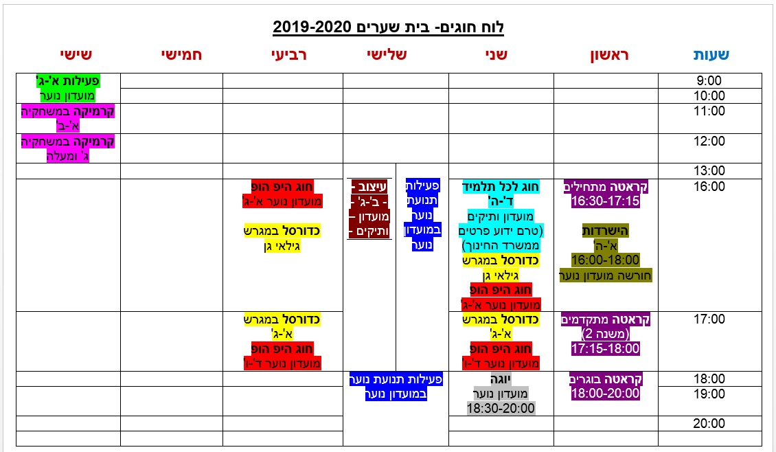 לבקשתכם הנה פרסום ראשון לחוגים לשנה הבאה.